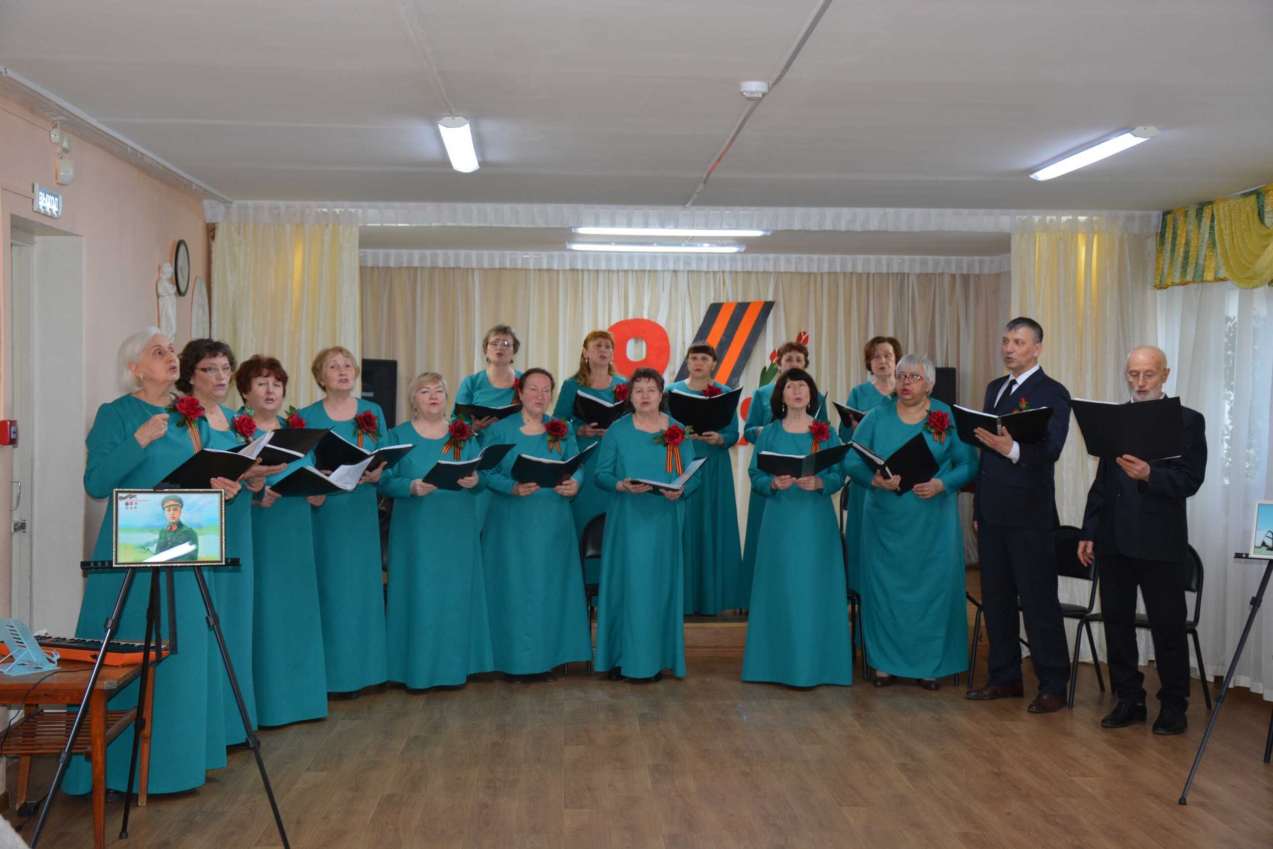 Музыкальная часть вечера, представленная участниками хора, добавила встрече особую атмосферу торжественности и светлой грусти. В их исполнении прозвучали песни: «За село Синявино», «Стальная эскадрилья», «Как не любить мне эту землю» и др. А солисты хора Ольга Ефремова, Алексей Ишин и Игорь Суворкин исполнили песни, сумев передать всю палитру чувств — от боли утрат до гордости за великий народ.