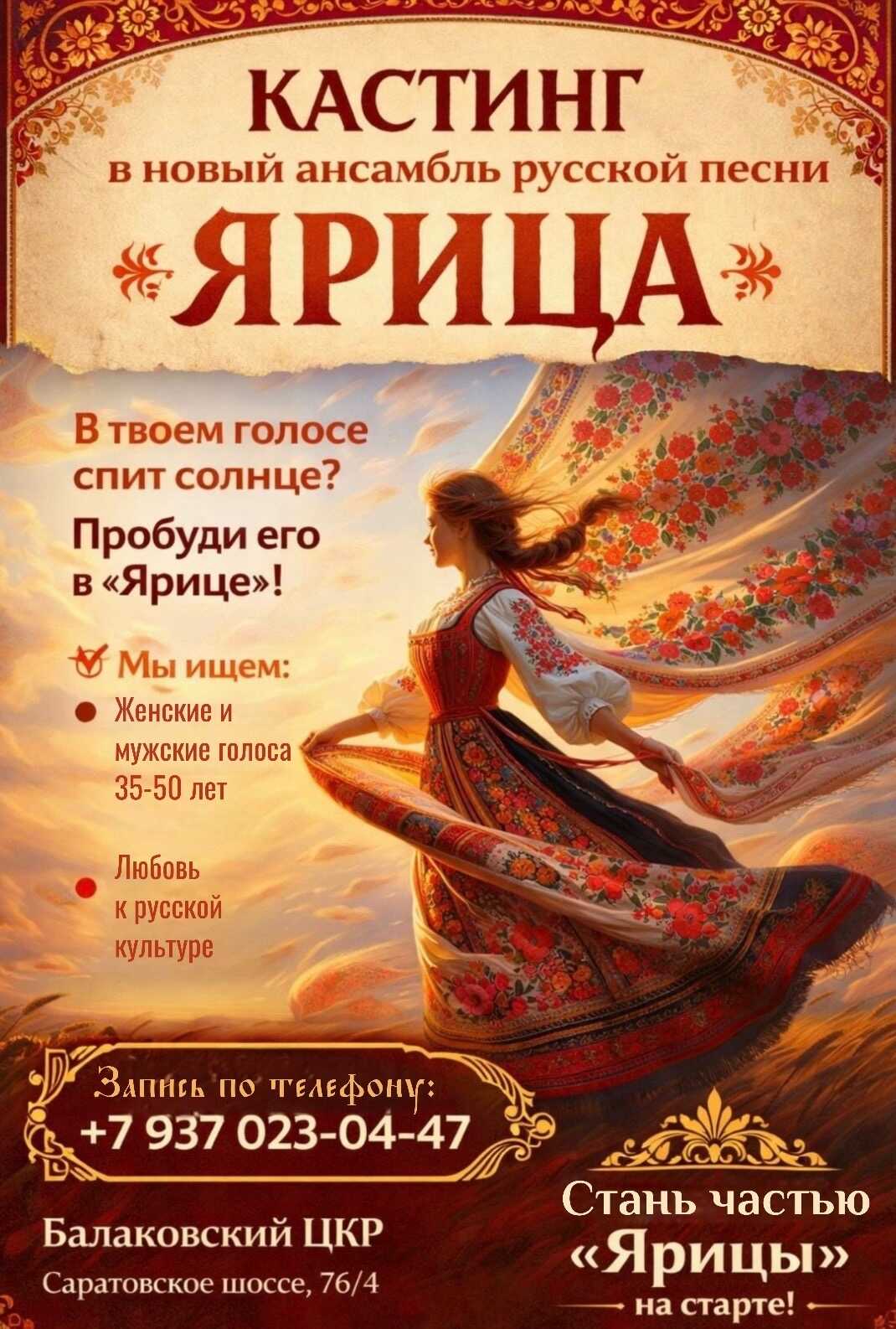 Балаковский Центр культурного развития открывает набор в новый ансамбль русской песни «Ярица» и ищет тех, кто чувствует зов традиции так же, как мы.