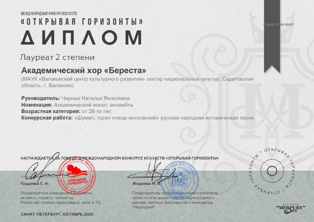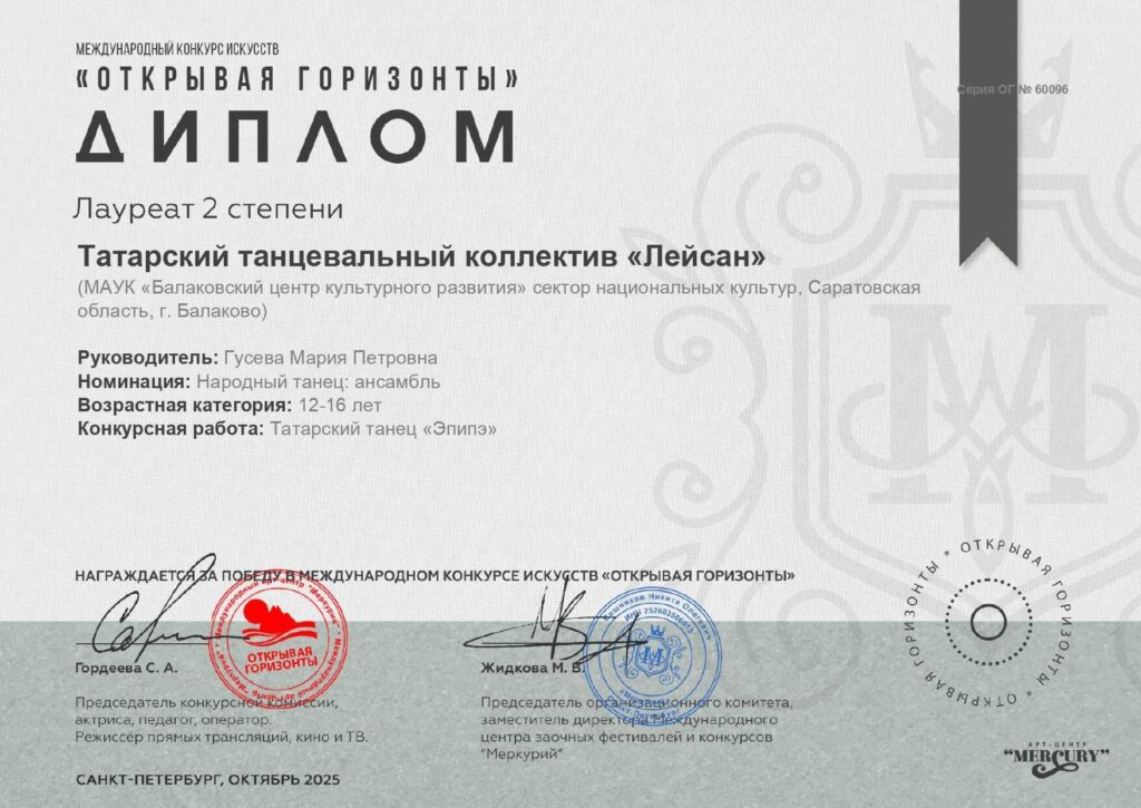 В начале октября творческие национальные самодеятельные коллективы сектора национальных культур Балаковского центра культурного развития приняли участие в Международном конкурсе искусств «Открывая горизонты», где были награждены Дипломами лауреатов 1 и 2 степени. Мы поздравляем всех участников с наградами и желаем ярких эмоций и новых побед!